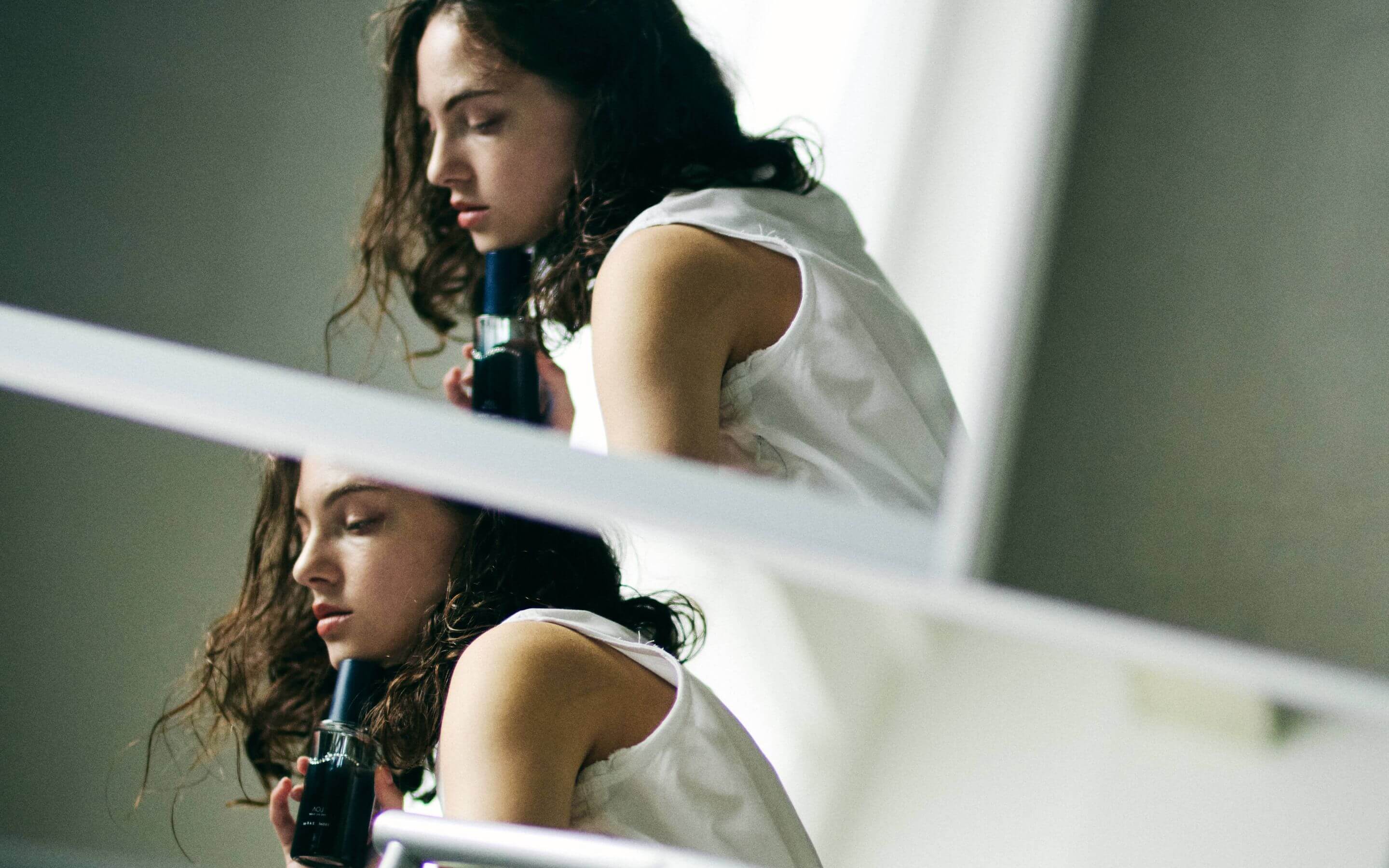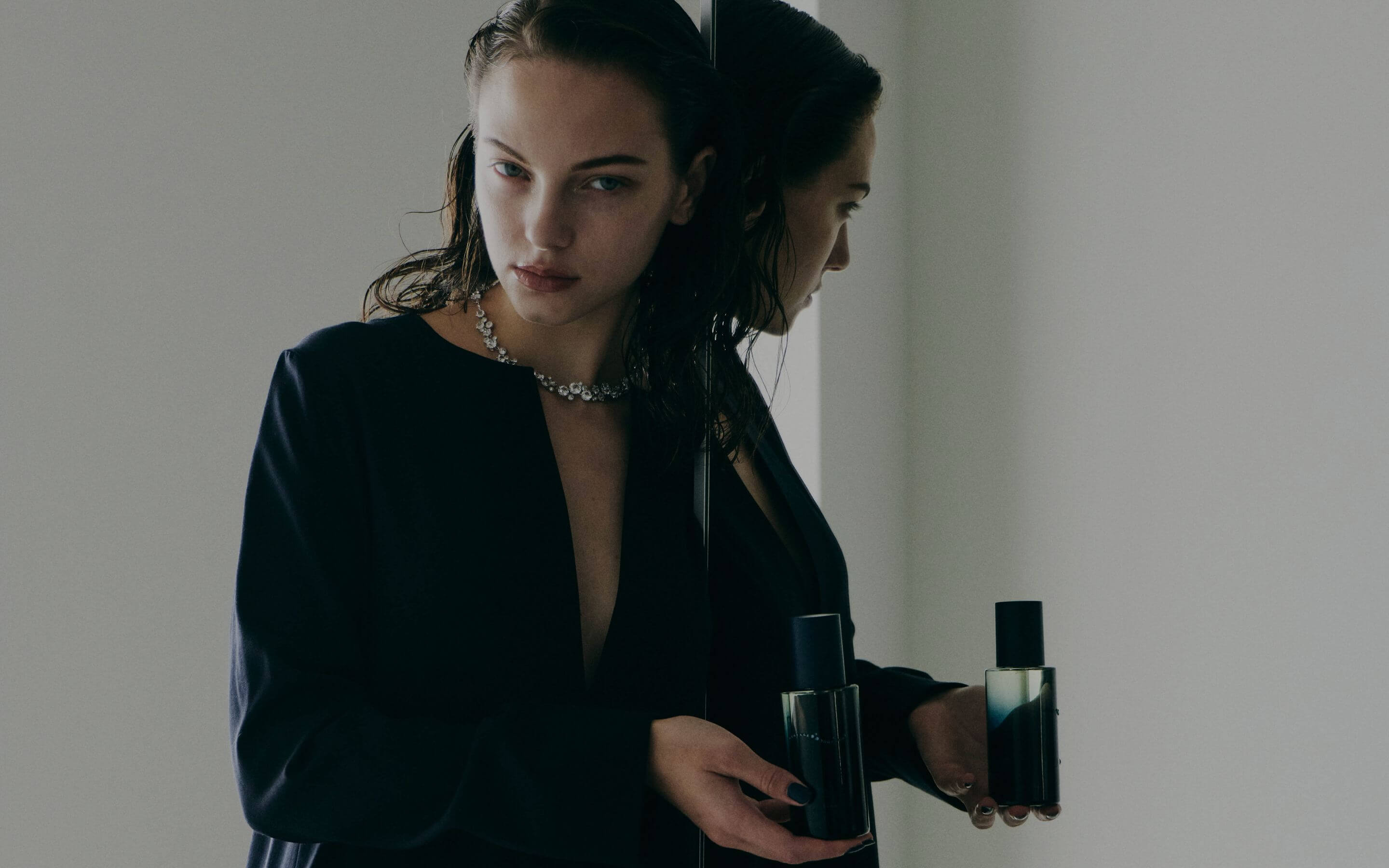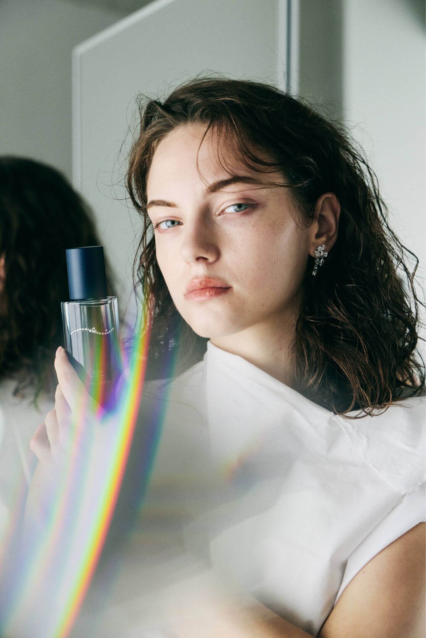 繊細な光を纏うクリスタルのように、フリージアやミュゲ、アップルやプラムがきらめくトップは、水面から白鳥が優雅に飛び立つ瞬間を想わせる、透明感と高揚感に満ちた香り。やがてローズやイリス、ジャスミンが官能的な美を紡ぎ、ピーチやムスクがやさしく包み込む。香りと光が溶け合い、心を満たす洗練された香り